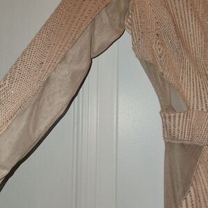 sheer and lined knit long sleeve low cut front open back zippered bottom dress has large front split