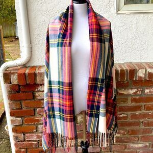 Beautiful Fringed Plaid Wrap Shawl One Size