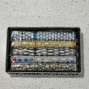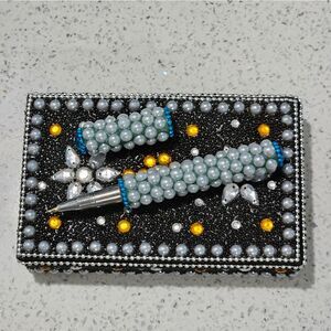 Beautiful, Hand Beaded Box with 5 Beaded Pens Inside. NIB