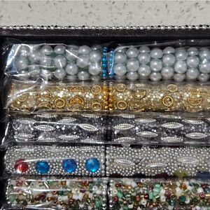 Inside are 5 hand beaded ink pens in an array of colors, and they are refillable.