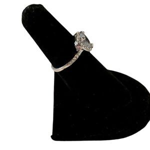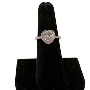 Beautiful silver heart ring with center heart shaped stone surrounded by rhinestones that continue around the sides of the band. Just an adorable little ring. Size 6
