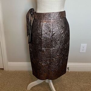 Beautiful Jacquard Metallic J. Crew Wrap Skirt Size 4. Thick material, a sort of purple/bronze color. Ties at the waist.