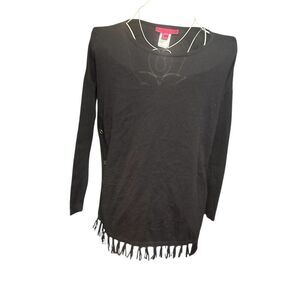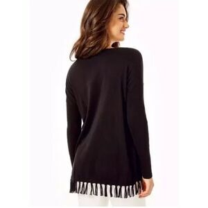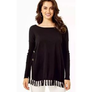 Beautiful Lilly Pulitzer Ramona Fringe Sweater Black Gold Buttons Cotton Blend S