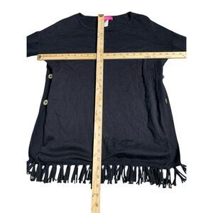 Beautiful Lilly Pulitzer Ramona Fringe Sweater Black Gold Buttons Cotton Blend S