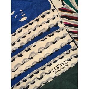 Beautiful Loewe Mujeres de Velazquez Green 100% Silk Square Scarf Square Scarf Good condition