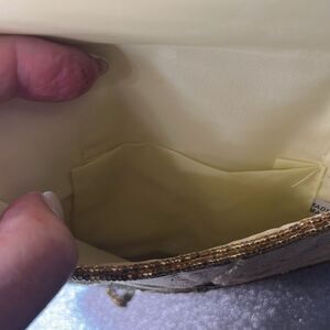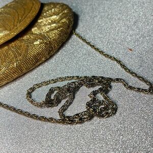 This little bag is an estate item. Measures 8” wide and 5” tall. Lovely lotus flower pattern made in Macau. Long chain has a 22”drop. This one is an old vintage timeless beauty.