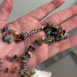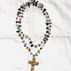 Beautiful Multicolor Genuine Gemstone Cross 15.5” -13” choker/ necklace
