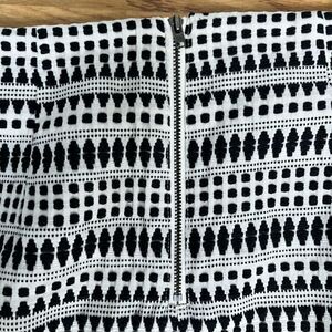 Beautiful black and white skirt with horizontal design pattern by LOfT. Size 12 petite with it measuring around 20.5 inches from top of waist to bottom hem. With functional back zipper and hidden delicate snap closure. Great to have for the office wardrobe or on hand for a classy date night. It’s in excellent used condition with no known flaws. Comes from a smoke free home.