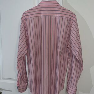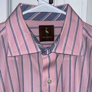 Beautiful Pink Blue stripe Tailorbyrd LS Party Button down shirt L w/ marks back