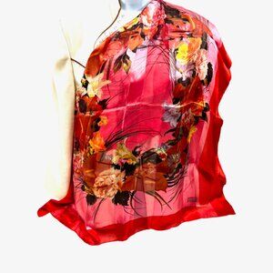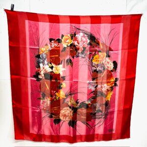 #40 Elegant vintage beautiful Gianfranco Ferre scarf features a floral pattern on a luxurious100% silk chiffon/satin fabric34"x34" , making it a stunning accessory for women. The multicolor bright red, pink black yellow gray design adds a touch of artistry floral , and the vintage piece is perfect for summer, fall, or spring. Made in Italy.