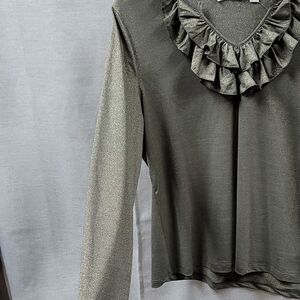 Perfect Party Blouse! This gorgeous silver sparkling Blouse is perfect for that holiday office party or just a night out with friends. In excellent condition with no rips, stains or snags!