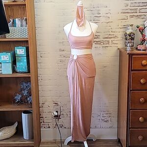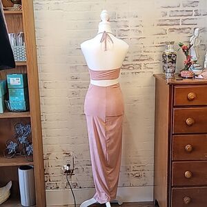 Beautiful Soft Rose Colored Slit Skirt/Halter Top