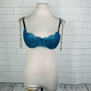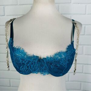 Beautiful Teal Blue Bra w/Rhinestone Fringe - Size Large