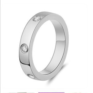 Gorgeous silver titanium 4 mm ring with inlaid cubic zirconias that is sleek and simple. Titanium really lasts so this ring will provide you with a longtime of wear. Super cute. Size 7q