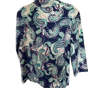 Like new, super pretty and comfortable jacket by Linear! Quality made, 98% cotton, 2% spandex, small front pockets, 3/4 sleeves.
