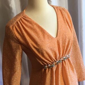 Beautiful VINTAGE gown in light tangerine with silver threads throughout