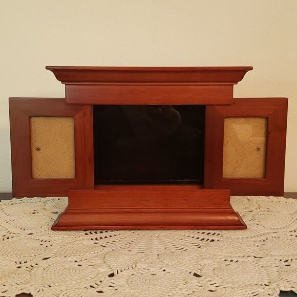 Beautiful Vintage Wooden Picture Frame with One Center and 2 Sliding Windows