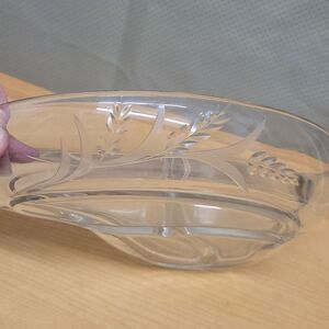 Lovely vintage crystal dish from Fostoria with the etched Wheat pattern. Free form in shape, it measures 10 1/2" x 8" at the widest spots. Stunning condition. (Please do not bundle with other glassware bundles, as this is quite large. Thank you.)