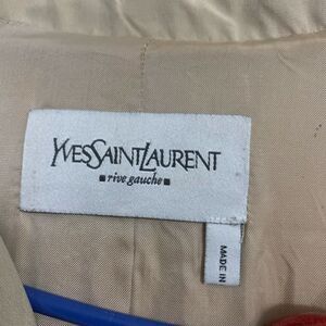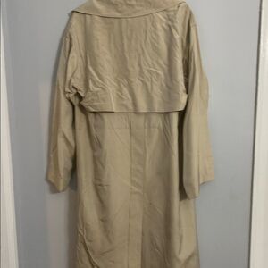 Ladies super cute tan colored 100% Silk trench coat by YSL. Excellent vintage condition. Ladies size large.