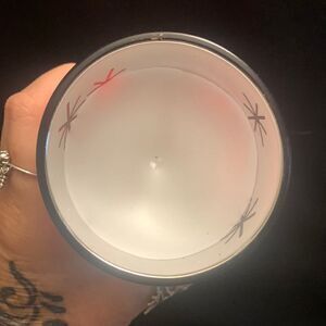 I have 7 of these candles. I have photographed them with and without flash in order to see the design. The red one is for comparison as to how it looks when lit.