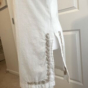 Super light cotton with peek-a-boo slits up the sides and gorgeous embroidery. Like new! Never worn!