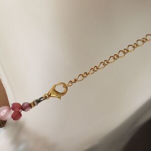 double chain beaded necklace with gold accent and clasp with round golden medallion