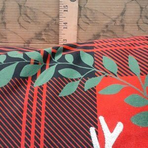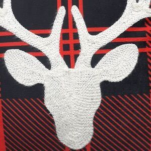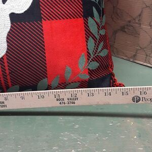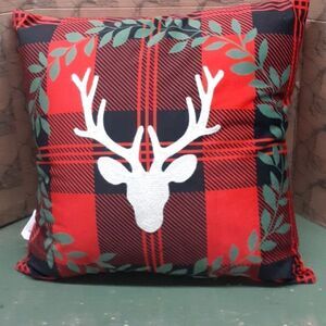 Georgous on any chair, sofa, & more. Beautiful plaid pillow with decorative stocking deer and surrounded with a laurel garland. Has solid red velvet style fabric on back for great cozy feel.