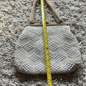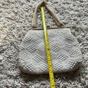 Beautiful cream 1960s Vintage Handmade White Beaded Handbag Purse Kiss-lock
