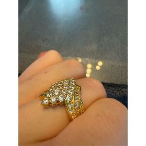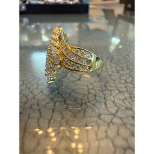 Unique gold plated silver cluster ring . CZ baguettes and rounds . Sz 8