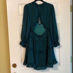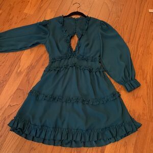 Green long sleeve but lightweight BoHo dress. Open back with three button closure at the top. Smoke free and pet free home and new w/o tags