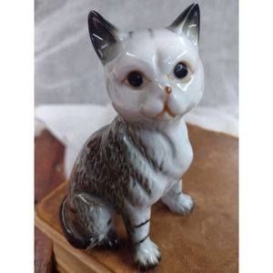 This beautifully detailed bone china cat figurine stands at 4.5 inches tall and is a must-have for any cat lover's collection. Made in China with exquisite craftsmanship, this porcelain feline captures the elegance and grace of the beloved animal.