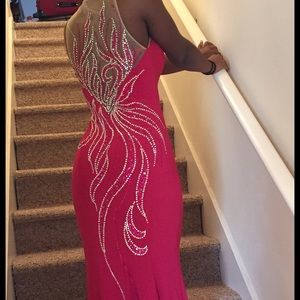 Hot pink prom dress with beading down the back as well as in the front. Has not been worn. Has not been altered. Willing to negotiate price.