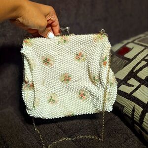 extremely beautiful. fully beaded party clutch purse comes with a long chain.