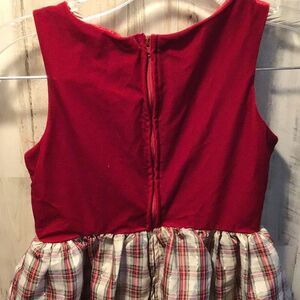 Beautiful, red velvet and plaid dress by rare edition, estimating size 3 to 5T