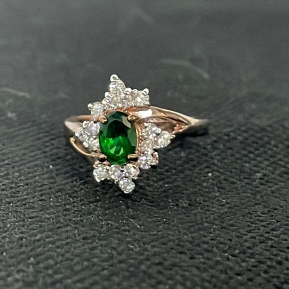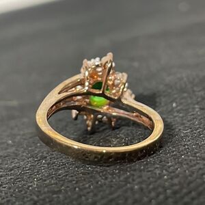 A beautiful ring with a green gem and white around it Size 7 In good condition
