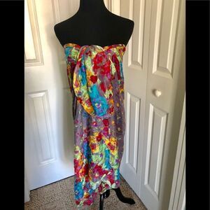 Beautiful swimsuit wrap. 80% cotton and 20% silk. Has some light wear. Not sure what brand.