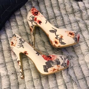 Sexy white red and gray top moda heels worn only one time. (Shoes--F)