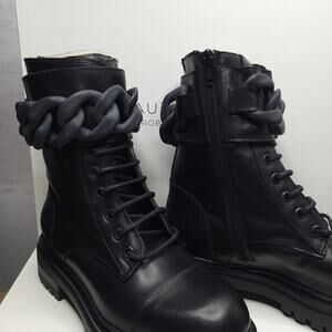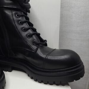 Beautiisoles by Robyn Women Zoey Black Leather Zip Lace up Combat Boots Size 5