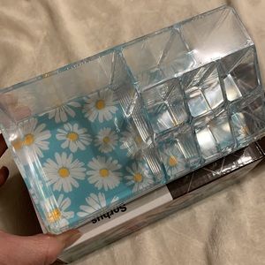 Sorbus Cosmetic Organizer Case (daisy print design, 9 slot compartments.