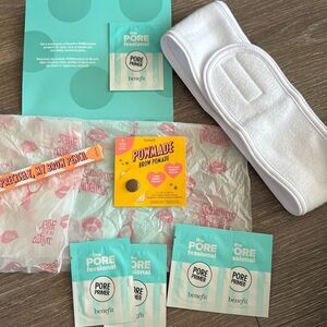 Comes with a headband before you do your make up or skincare routine, brow pencil, brow pomade, and pore primer. Everything is brand new, never used. Great condition 10/10