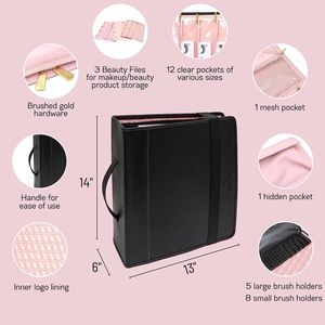 Beauty Binder Makeup Organizer with 3 See Through Files, Cosmetic Display