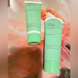 🛍️set of 2 Global Beauty Care Blemish Control Pore Clearing Scrub & Oil Free Clarifying Cleanser 🎊with Glycolic Acid Sugar & Papaya. Microfine Exfoliant Gentle for Acne-Prone Skin 2.5OZ(74mL)🎉