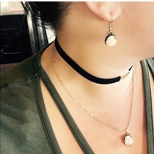 Inspired by beauty and the beast, ⭐️⭐️⭐️⭐️⭐️handmade leather choker 💖with attached light Dainty pink rose on a gold chain👑and matching gold Enchanted pink rose earrings.🙌🏻‼️‼️‼️‼️‼️