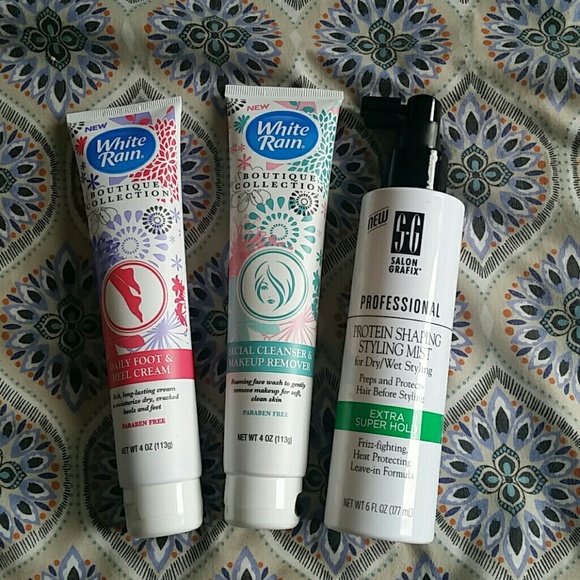 NEW, NEVER USED! Protein Shaping Styling mist, Facial clenser/Makeup remover & Foot/heel Cream.