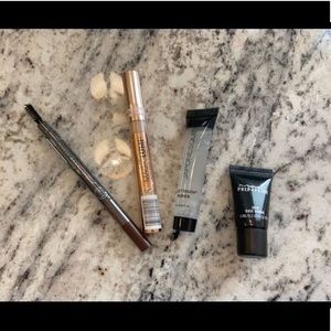 This is a pack with makeup, makeup bags, brushes, and face masks.
