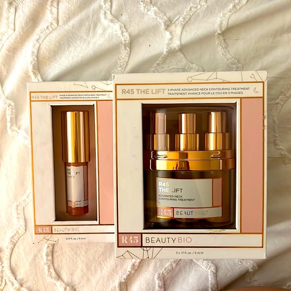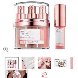 R45 The Lift from BeautyBio is a proprietary three-phase beauty treatment with increasing concentration of TriFirm complex, sorghum stalk, polylift 3D protein, and vitamin E. It helps provide hydration and exfoliation for softer, smoother-looking skin.