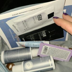 Beauty Brands 10 piece travel size sampler set includes high end beauty brands ($74+ value) with gray velvet beauty bag. Plus free hair gloss treatment ($42 Value)