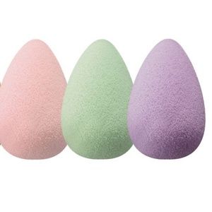 NIB limited edition set of 3 color coded mini makeup sponges (green, pink, purple).