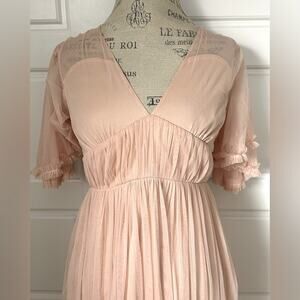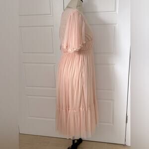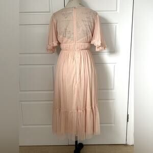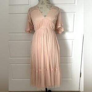 Beauut $87 Bridesmaid tulle midi dress pink flutter sleeve blush US size 4 asos