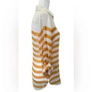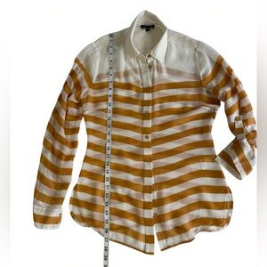 Bebe silk blouse, Mulberry silk shirt, women’s striped blouse, button down silk top, luxury silk blouse, chiffon feel blouse, mustard stripe shirt